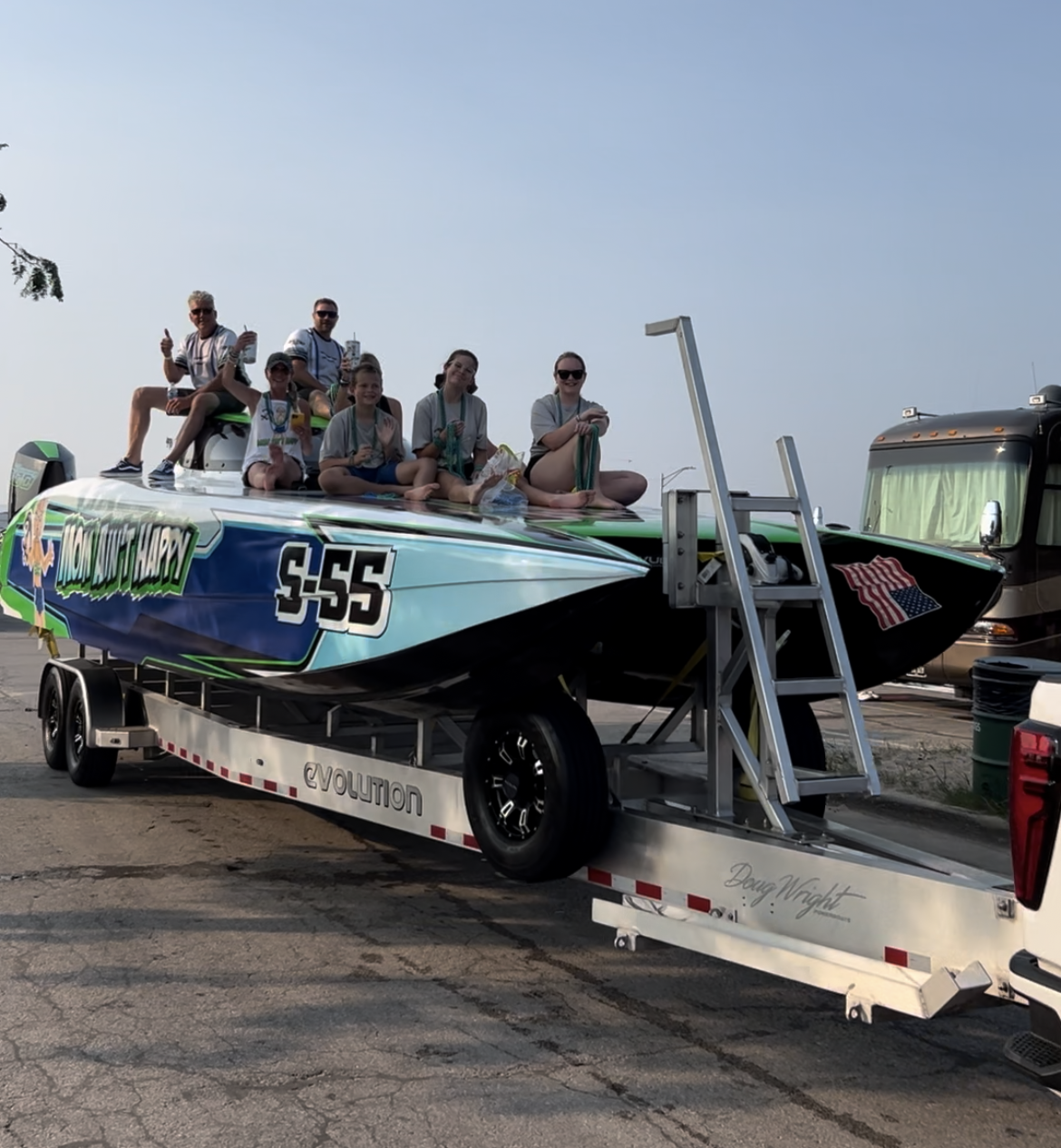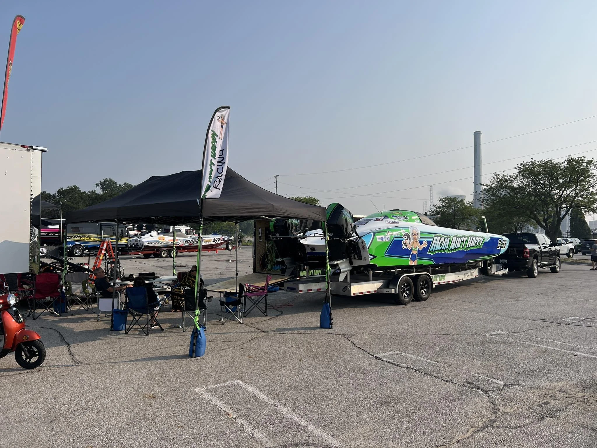 Mom Ain’t Happy Racing competes in offshore powerboat racing events across the United States.